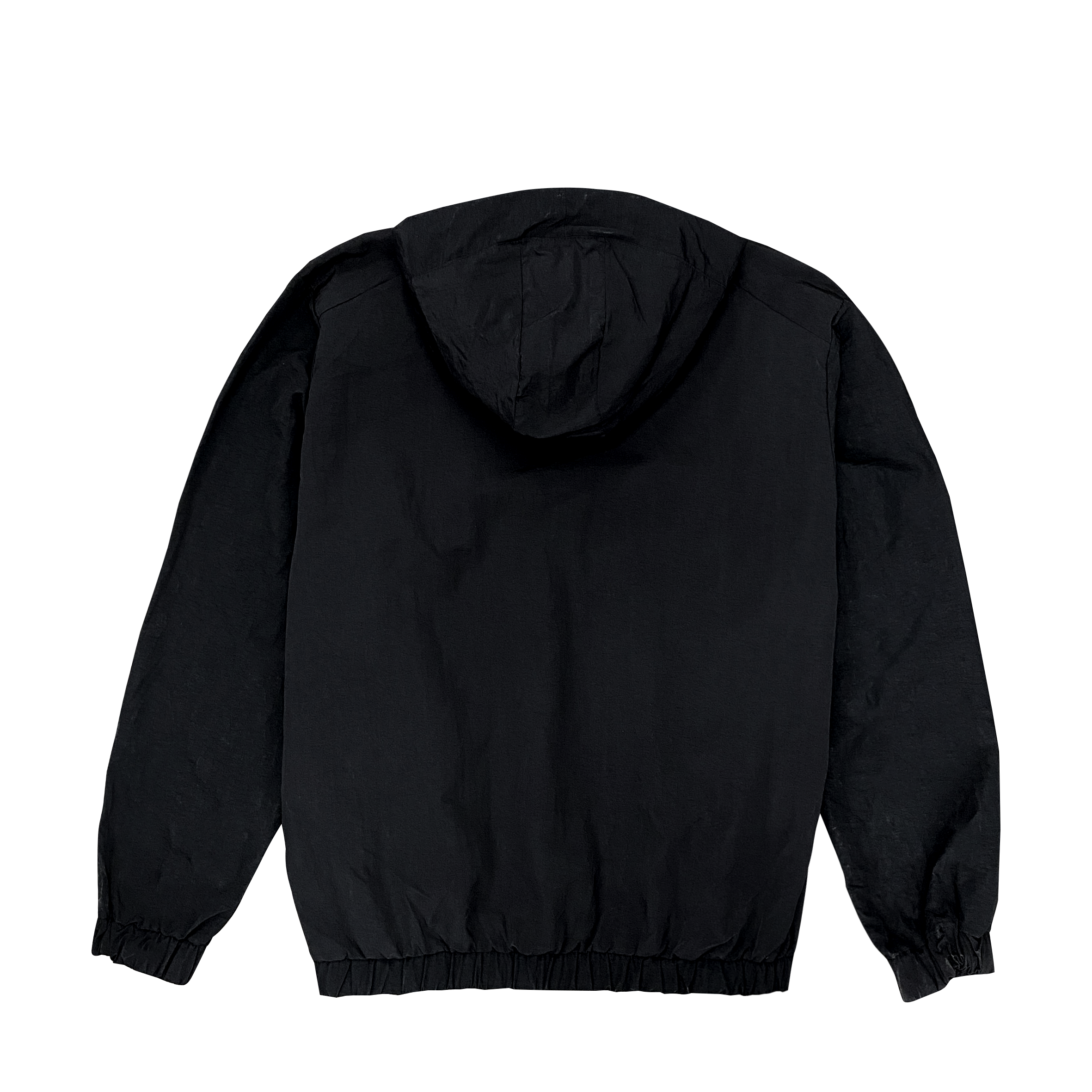 Seu design moderno conta com capuz duplo com recorte, pesponto, ilhós, elástico roliço e reguladores, garantindo um ajuste seguro e personalizável. Os recortes nos ombros e laterais conferem um caimento anatômico e sofisticado, enquanto o bolso embutido com zíper invisível oferece praticidade e discrição. O acabamento nos punhos e barras com elástico de 4,0 cm proporciona maior ajuste e proteção contra o vento.